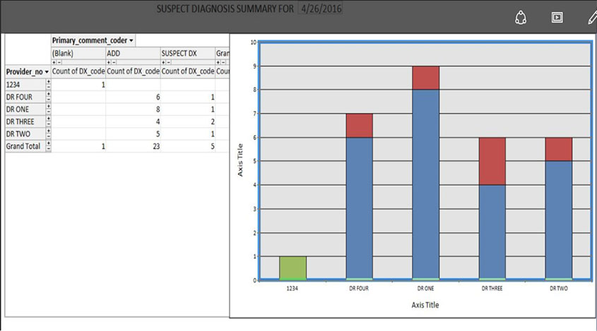 Evaluation and Management audits are available for all provider types. The following reports are provided: